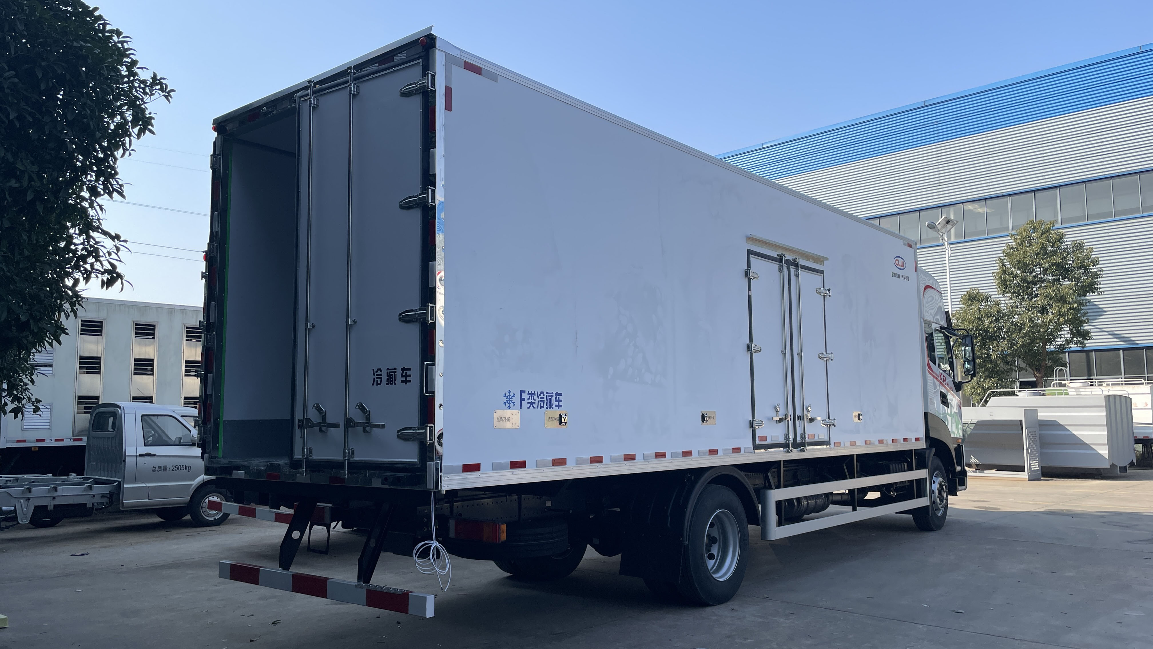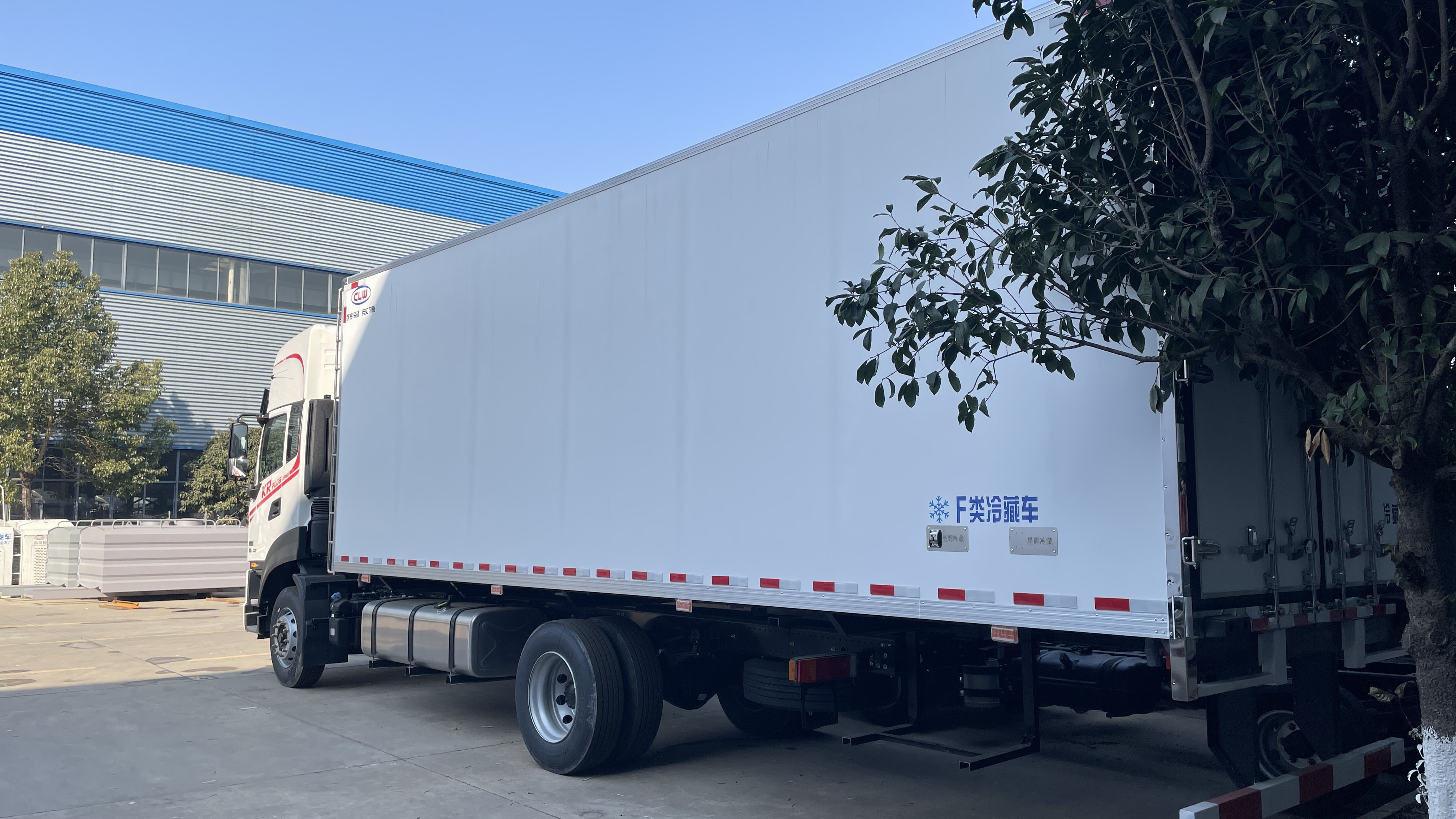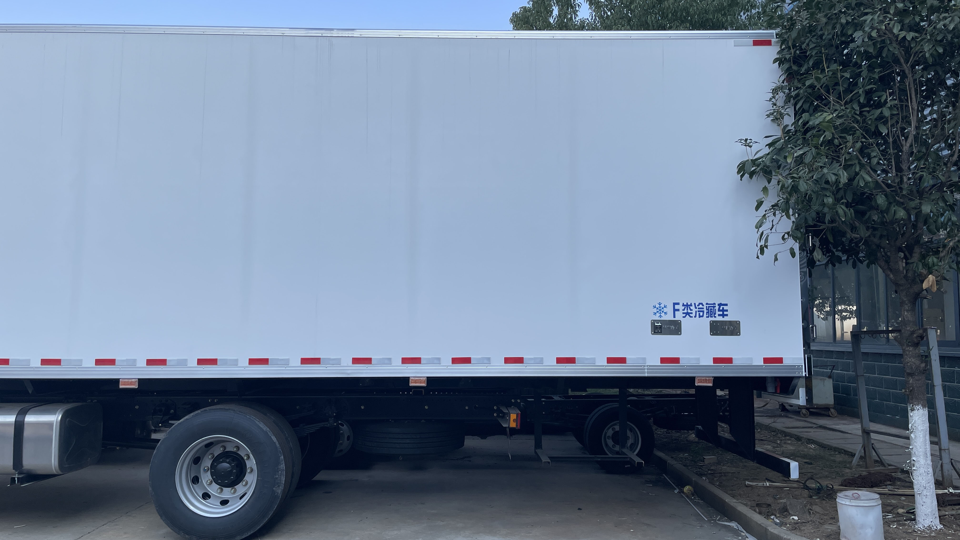 二、廂體配置:采用我司《晶龍工藝》專利技術——1200噸液壓加熱固化設備一體成型生產線制造,廂體保溫技術達到國家A級標準,廂體尺寸:6300,6500,6800×2400×2500(mm)。工藝特點:1、廂板采用全密封樹脂膠粘連聚氨酯發泡板高壓加熱固化而成,厚度8cm;2、廂板內外面料為2.5mm厚新款納米玻璃鋼(不吸光,隔熱性好,硬度強,抗氧化);3、粘連輔料為玻璃纖維絲布;4、無空隙填充聚氨酯發泡保溫材料;5、全密封樹脂膠粘連;6、預埋實木加固廂體;7、防銹處理槽鋼框架支撐;8、鋁合金包邊、不銹鋼包角;9、內部加裝LED照明燈及廂體示寬燈;10、后門框、鉸鏈、鎖件均為不銹鋼材質;11、后門加裝防撞膠塊;12、采用三元乙丙橡膠密封條。