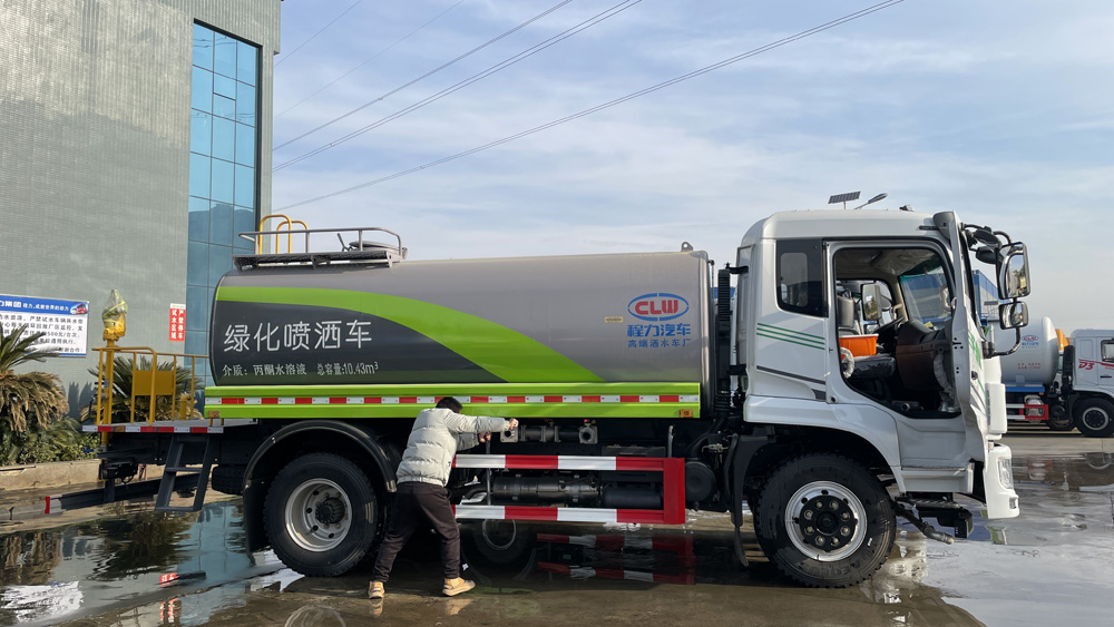 三、選裝配置: 選配駕駛室內(nèi)電控氣動操作;大鴨嘴前沖噴頭壹對;萬向前沖球閥;路面沖洗水管卷盤;本田高壓水泵,水槍可沖洗人行道、移動洗車等; 藥盤;長警燈,LED箭頭燈;罐側(cè)帶閘門,罐后加裝噴霧降塵裝置;灑水車泵標(biāo)配程力泵選配杭州威龍泵;可對主管道加粗,可選316大口徑球閥;罐體內(nèi)防腐、保溫、襯塑處理,灑水車作運水車用可加裝自流口。運熱水罐體可做保溫,運生活用水可做食品級304不銹鋼罐體。